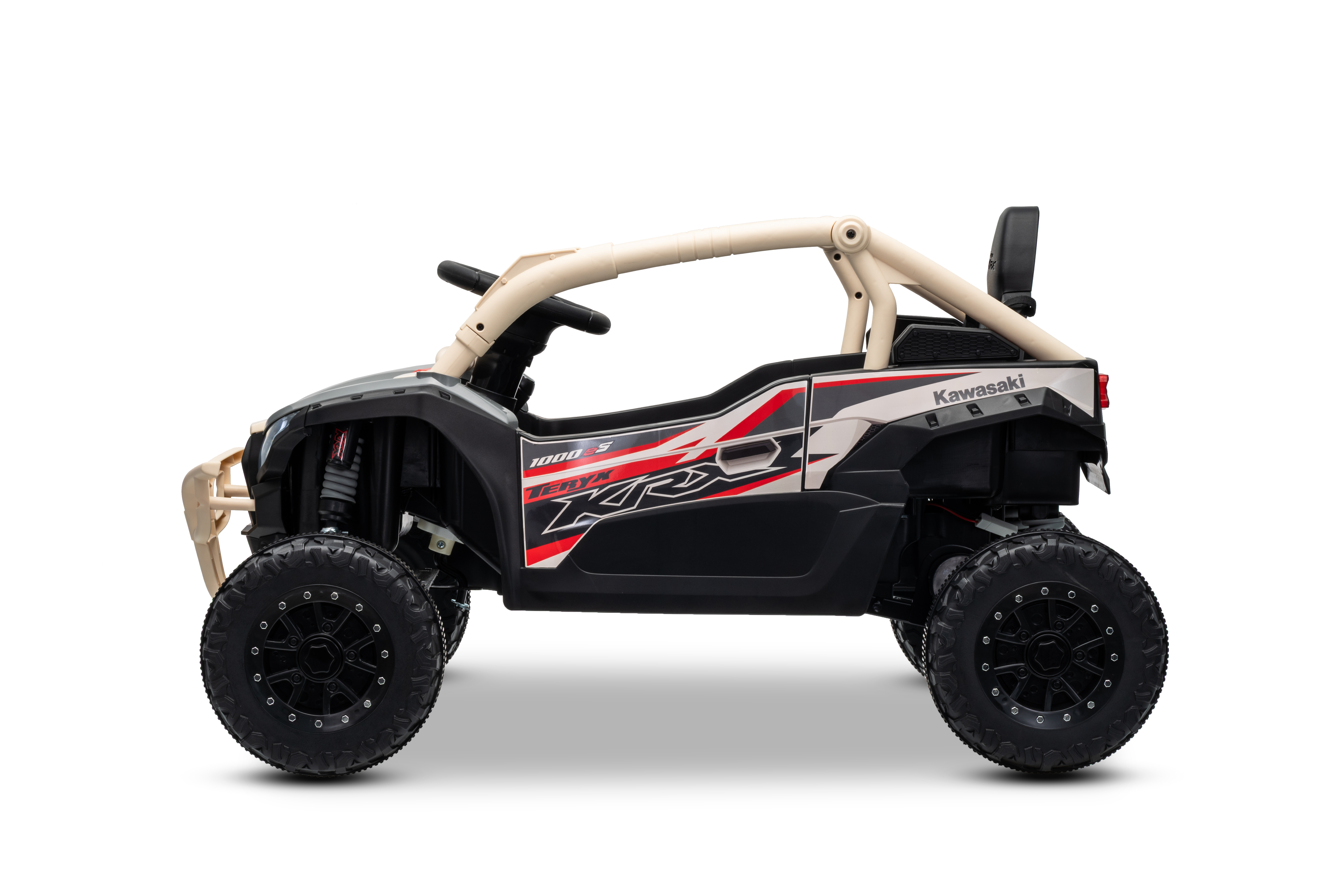 Electric Ride-on car Kawasaki TERYX KRX 1000 12V, khaki, single seat, rear axle suspension, 2.4 Ghz remote control, Lithium battery, 2 x 25W Engines, Openable protective frames, MP3 player with USB/AUX input, Licensed