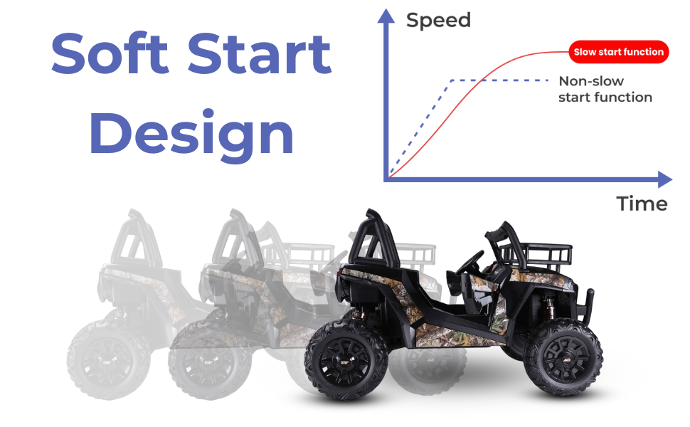 - Soft Start/Smooth acceleration - When the accelerator pedal is pressed, the car starts to run, and the acceleration is electronically controlled so that it is smooth thanks to the integrated acceleration.